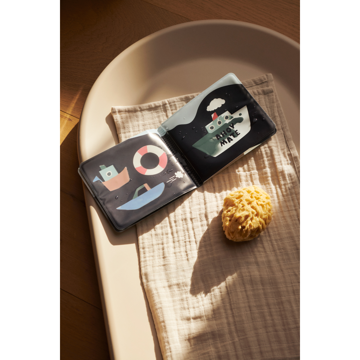 Mit dem wasserfesten Waylon Badebuch wird die Badezeit zu etwas ganz besonderem, ob in der Badewanne, am Pool oder unterwegs… Es unterhält und beschäftigt Babys und Kleinkinder, nicht nur während sie in der Wanne planschen. Tauche das Buch einfach in Wasser ein oder lass‘ dein Kind die weißen Stellen mit nassen Fingerchen nachfahren, unter den weißen Flecken verstecken sich bunte Boote und Illustrationen. Auf der letzten Seite befindet sich eine Tasche mit zwei zusätzlich herausnehmbaren schwimmenden Elementen, die das Spielerlebnis ergänzen, ein Rettungsring sowie Boot können herausgenommen und im Wasser verwendet werden.